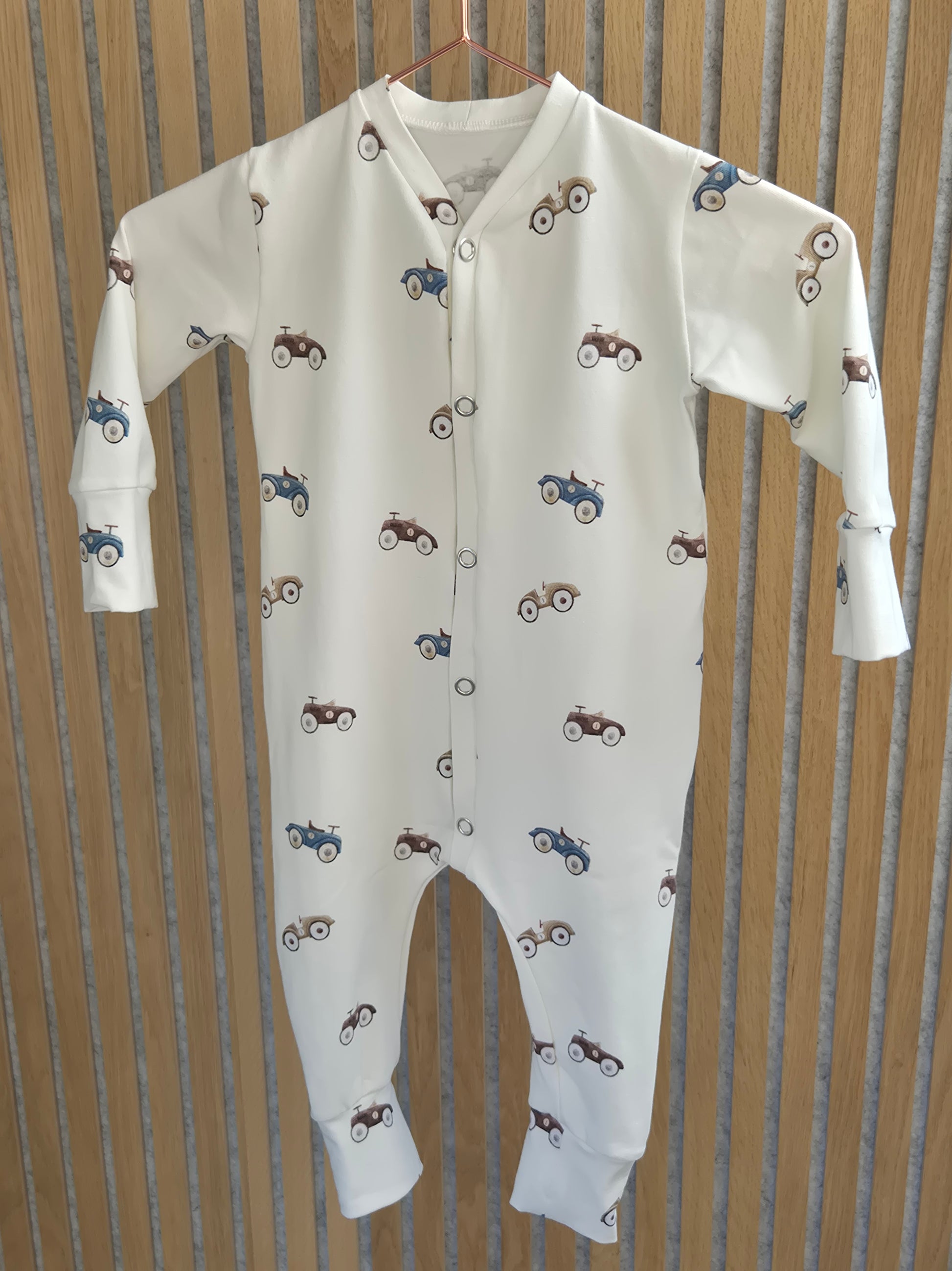 Leichter und locker sitzender Einteiler/Schlafanzug für Babys und Kleinkinder im süßen, zeitlosen Auto- Design. Der totale Hingucker. Unser Teiler besteht aus zertifizierter Bio-Baumwolle und Elasthan – für besonders weichen, flexiblen und hautfreundlichen Tragekomfort. Er passt sich den Bewegungen deines Kindes optimal an, ideal zum Spielen, Krabbeln oder Kuscheln. Jedes Stück wird liebevoll erst nach Ihrer Bestellung genäht, sodass es ein nachhaltiges Unikat ist.