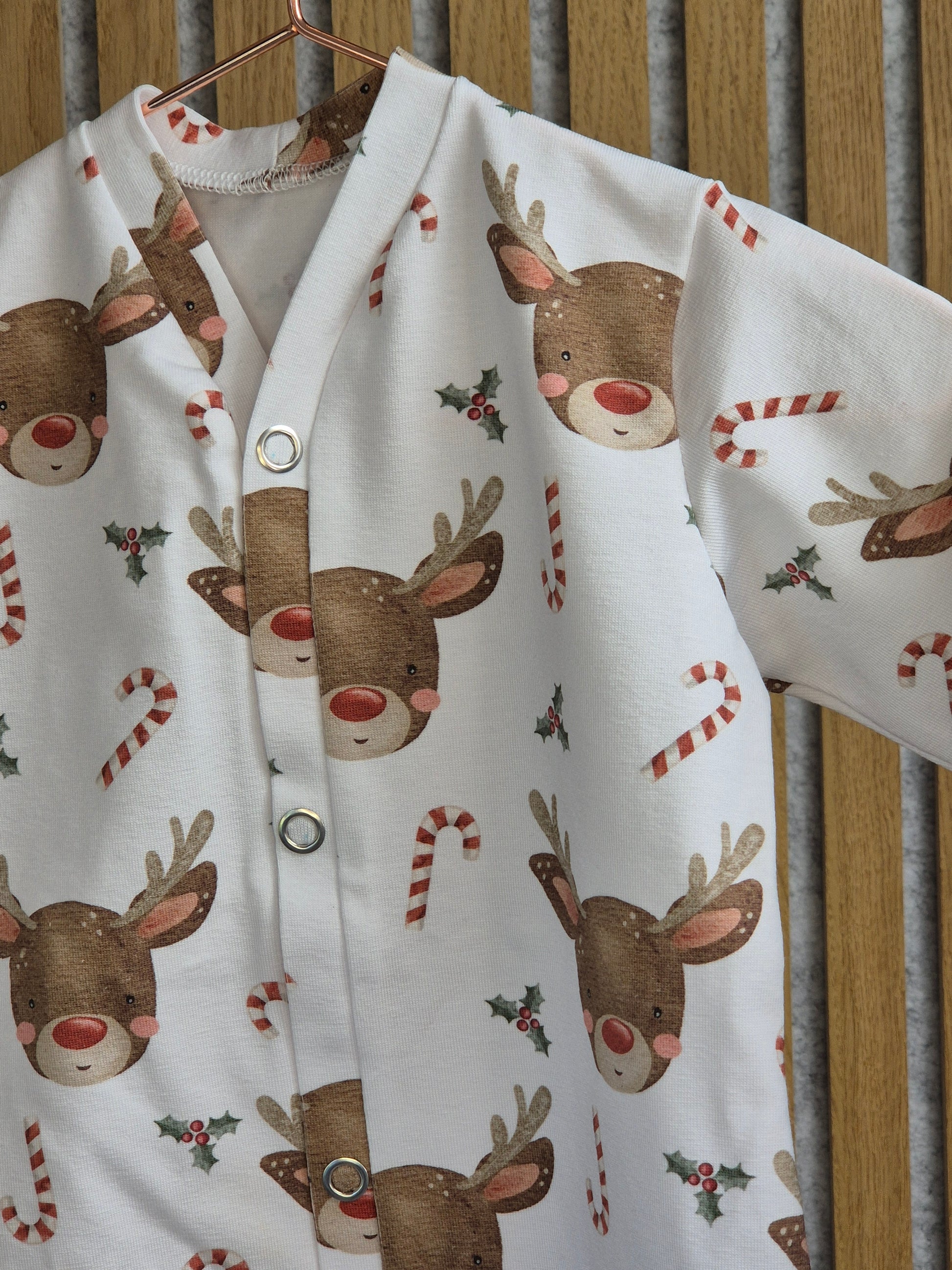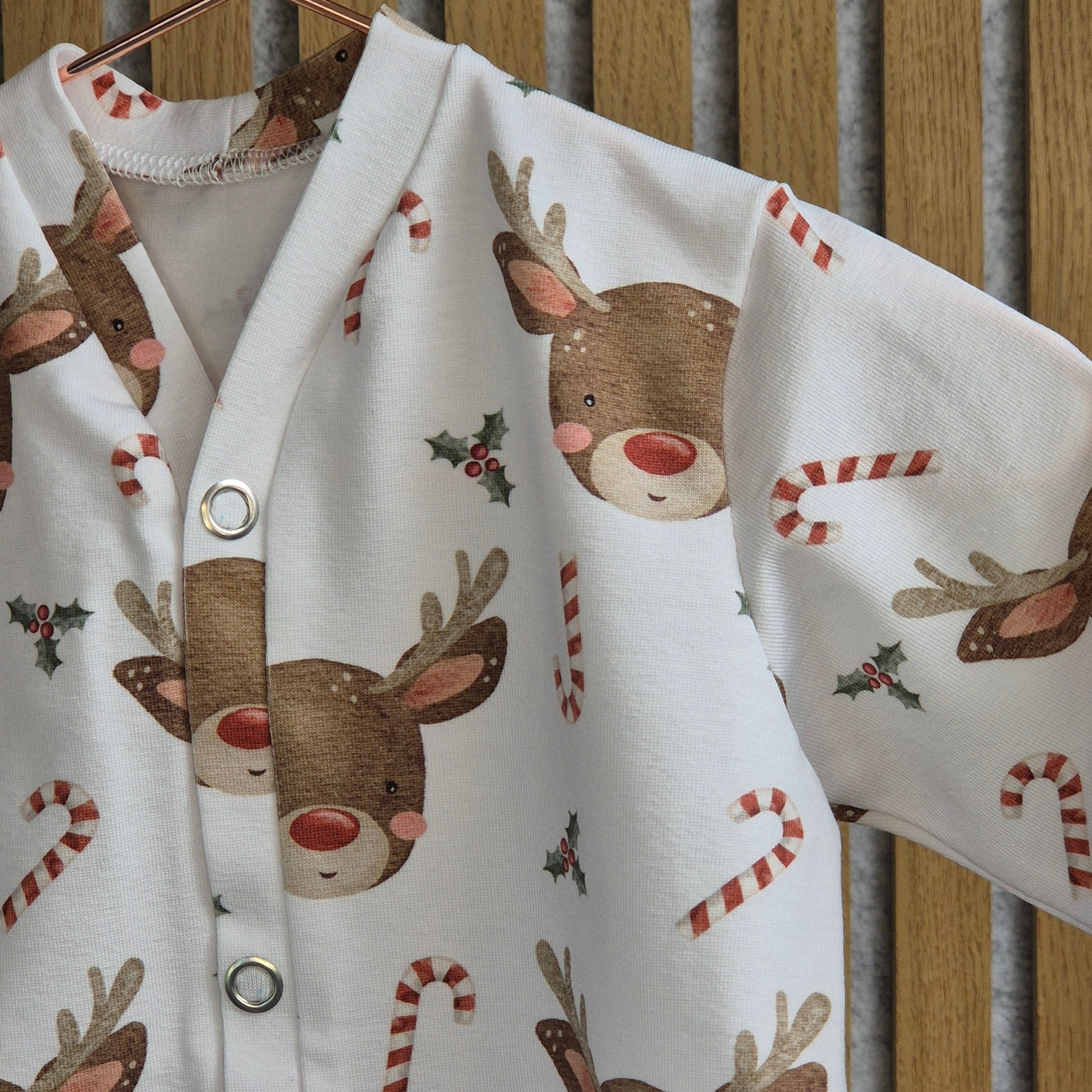 Leichter und locker sitzender Einteiler/Schlafanzug für Babys und Kleinkinder im süßen, weihnachtlichen Rudi- Design. Unser Einteiler besteht aus zertifizierter Bio-Baumwolle und Elasthan – für besonders weichen, flexiblen und hautfreundlichen Tragekomfort. Er passt sich den Bewegungen deines Kindes optimal an, ideal zum Spielen, Krabbeln oder Kuscheln. Jedes Stück wird liebevoll erst nach Ihrer Bestellung genäht, sodass es ein nachhaltiges Unikat ist.