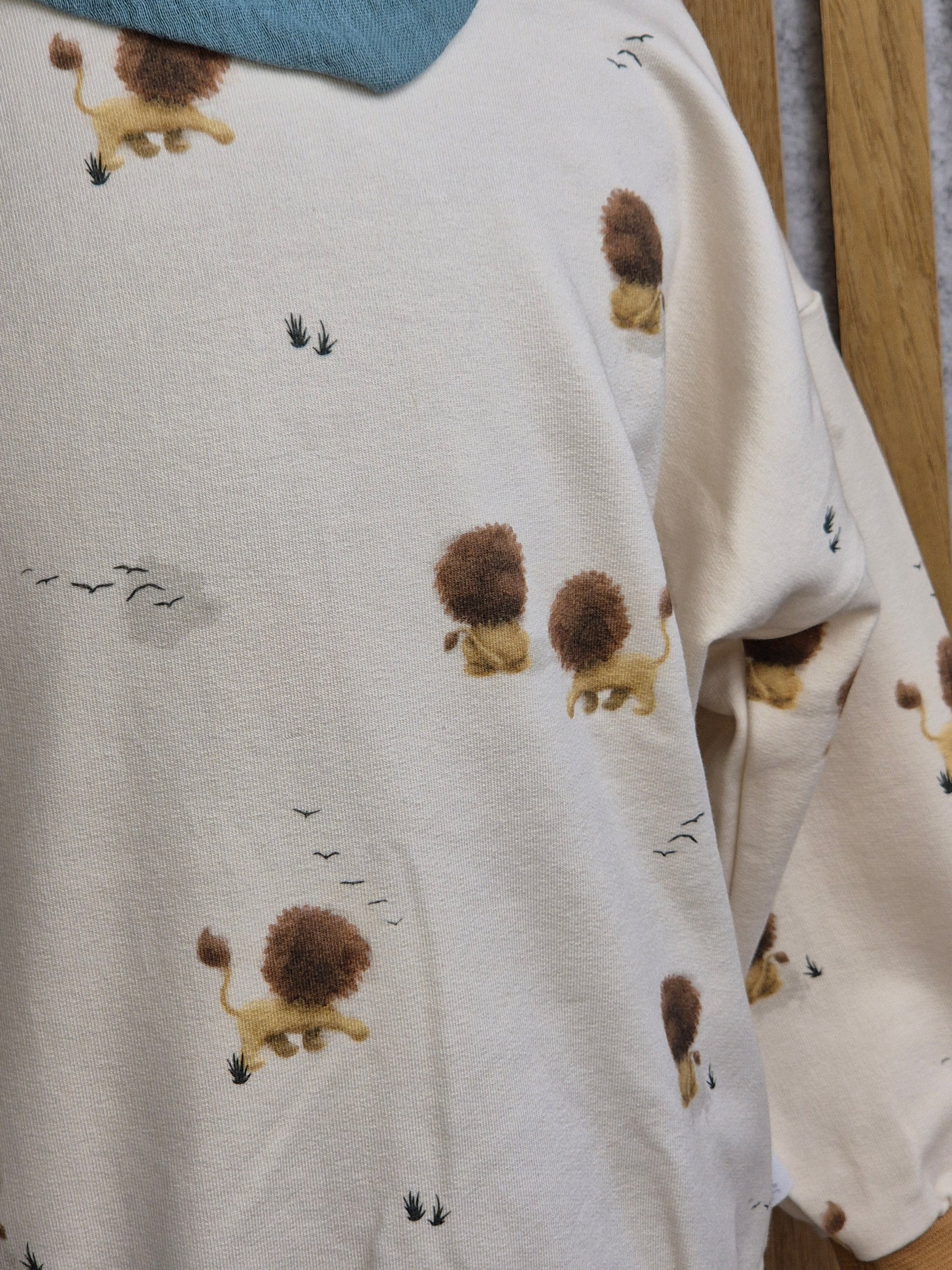 Aus weichem Bio-French-Terry(95 % Bio-Baumwolle, 5 % Elasthan), oversized geschnitten für Geborgenheit und Bewegungsfreiheit – wächst dank lockerer Passform einfach mit.